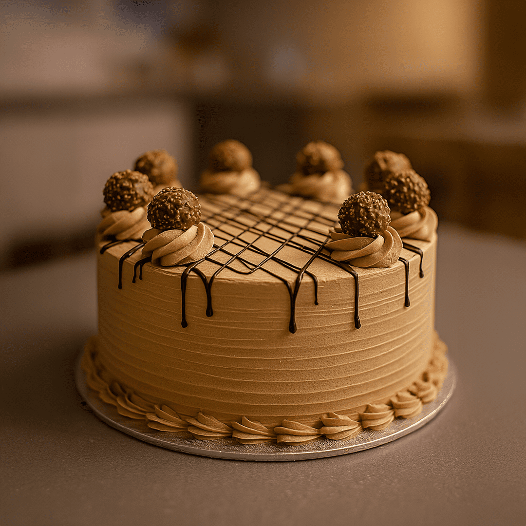 Discover the art of celebration with our Chocolate Cream & Sponge with Ferrero Rocher Cakes, a symphony of fresh, top-quality fruits, and a kaleidoscope of flavors and designs tailored for any event. The Pantry Cakes brings you an exquisite range of round cakes, including options for eggless sponge cakes, ensuring every preference is catered to with perfection.